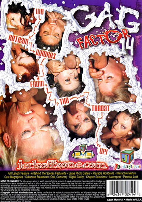 Retraining whores from the throat up! JM Productions present Gag Factor 14, featuring 2 hours and 10 amazing scenes of cum-loving whores getting skull fucked beyond belief! Gag reflex? These girls have no idea what that is! Cum watch an all-star cast of gorgeous sluts as they get their throats stuffed with hard cocks!