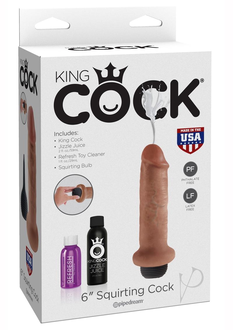 This King Cock Squirting Cock is ultra-realistic and will satisfy all of your cravings for cum-play! Hand-sculpted with amazing attention to detail and featuring our exclusive Jizzle Juice squeeze-bulb, the King Cock Squirting Cocks are the most satisfying ejaculating dildos on the market! Every King Cock is phthalate-free, latex-free, body-safe, hypoallergenic, and proudly made in the USA.