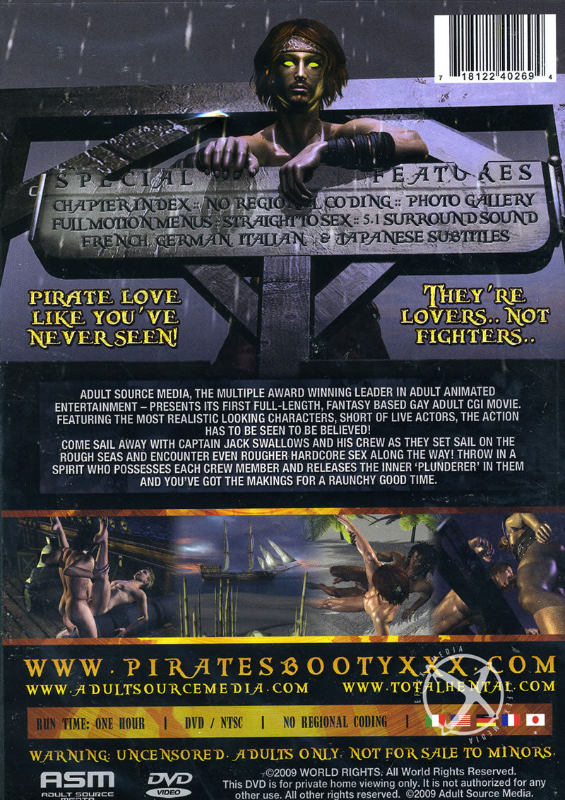 Adult Source Media, the multiple award winning leader in adult animated entertainment, announces the release of PIRATE`S BOOTY, the adult industrys first full-length fantasy based gay CGI movie. With over five full sex scenes, PIRATE`S BOOTY features the most realistic looking characters short of live actors. The action has to be seen to be believed! It brings the legend of Jack Swallows as he and his crew set sail on harsh seas and encounter rough, dirty, hardcore sex along the way. Helping the