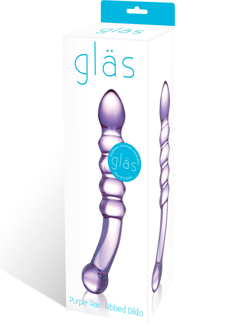Add some color to your toy collection with this translucent purple ribbed dildo. Ribbed structure provides added pleasure for vaginal or anal play. Curved handle for greater control. Fracture-resistant and hypoallergenic, this toy can be easily cleaned. Retains heat and cold for increased stimulation. Compatible with all lubricants.
