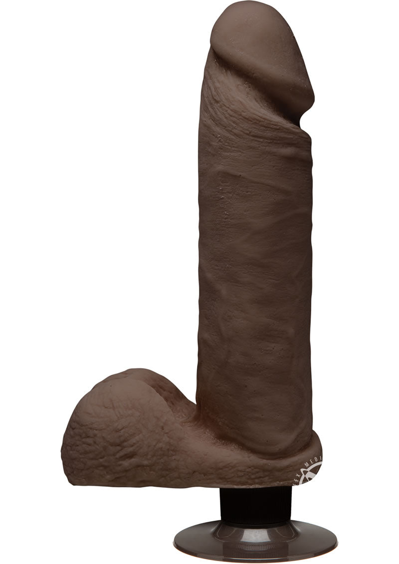 Everybody wants it! Molded from a real erect penis, the perfect texture and proportions of the dual density ULTRASKYN Perfect D Vibrating 8 Inch come to life with a simple twist control that powers the strong multi-speed vibrator inside the suction cup base.
